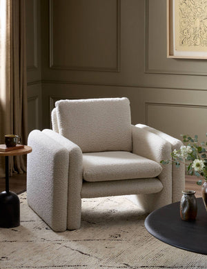 Bring a retro touch to your look with this double layered accent chair. The ultra soft upholstery and plush cushions are the perfect complement to this occasional chair's clean geometric design. Pair this chair with other sculptural elements for a cozy yet modern lounge feel.