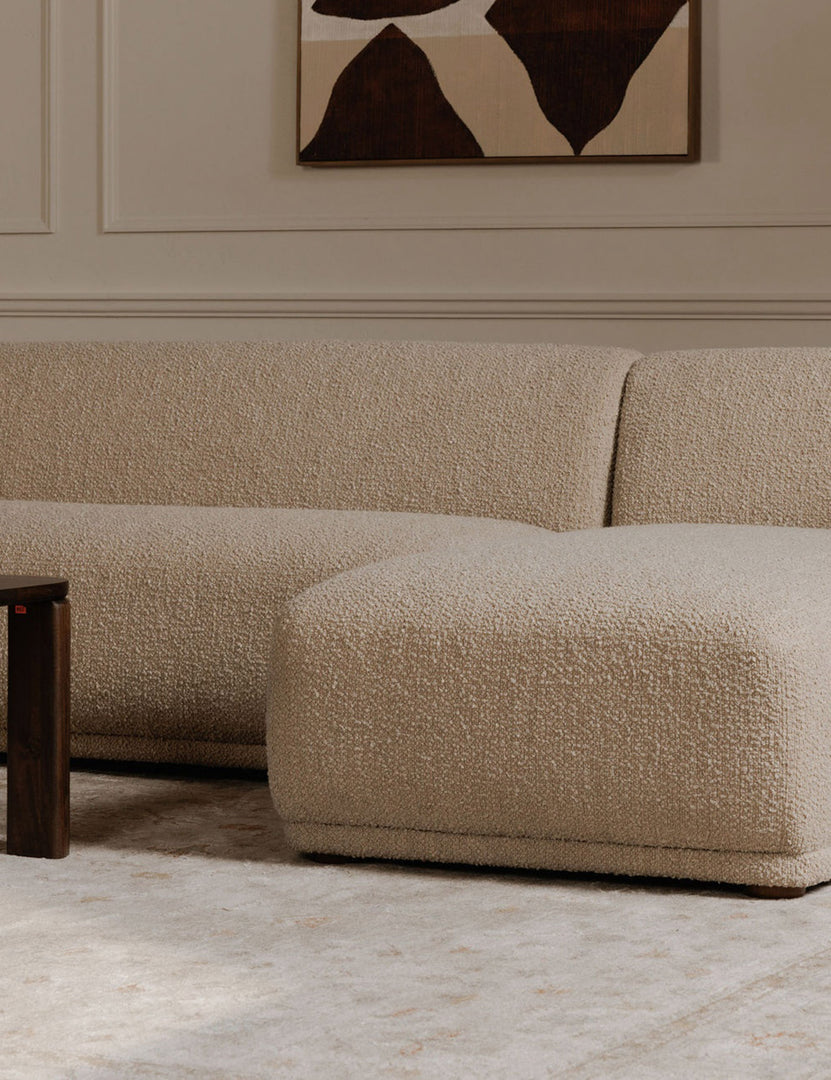 The Orza sectional is made for modern comfort. Its soft lines cradle you in a cove-style seat and broad chaise while striking a sleek silhouette in the room. The boucle upholstery boasts a robust 100,000 rub count for a luxe touch with lasting elegance. This sectional sofa is the perfect spot for curling up or entertaining.