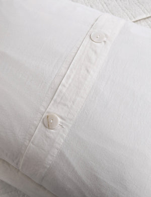 Pom Pom at Home offers superior linens and textiles made with the highest quality natural fibers for that relaxed, lived-in feel. The Owen sham features a 100% linen front and 100% cotton back and fill for a grounding touch of comfort. A quilted square pattern sets off the breathable weave for a simply refined design that layers into any bedscape with everyday elegance.