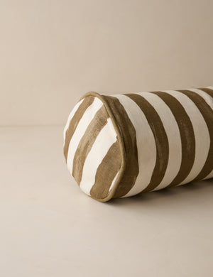 Make it pop with this balanced yet modern long bolster pillow. The Painterly Stripe print on linen is the perfect way to add a touch of visual impact to the room while reflecting an aesthetic grounded in organic appeal. This oversized accent pillow is from our exclusive Sarah Sherman Samuel collaboration and features all the trademarks of her warm, edited style.