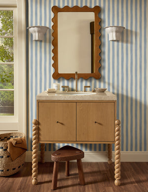 Make it pop with this balanced yet modern wallpaper design. The wallpaper's painted stripe pattern is the perfect way to add a touch of visual impact to the room while reflecting an aesthetic grounded in organic appeal. This wallpaper is from our exclusive Sarah Sherman Samuel collaboration and features all the trademarks of her warm, edited style.