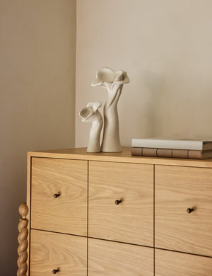The Pari vases offer a soft sculptural note with their slim shape and expressive floral openings. Nestle them together for a botanical moment in any curation. This piece is from our exclusive Sarah Sherman Samuel collaboration and features all the trademarks of her warm, edited style.