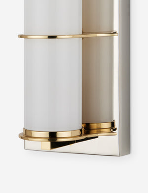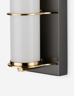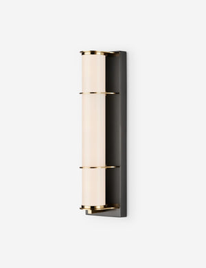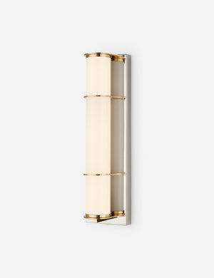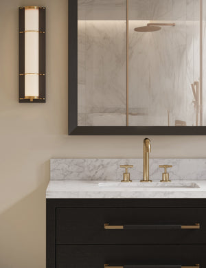 The Payson sconce is a chic nod to vintage bath lighting. A milky glass tube rests within a sleek metal frame, backed by a streamlined wallplate for contrast. We love this wall sconce for flanking mirrors in both modern and transitional bathrooms.