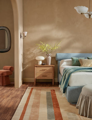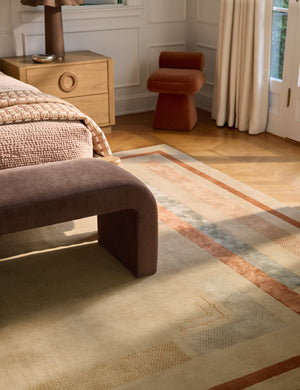 A linear motif gives our Pemberton rug a structured sensibility, softened by the tonal variation of its hand-loomed fibers. The woolen blend adds dimension without overwhelming your space, offering a balanced backdrop for layered styling. Use this patterned rug to introduce quiet visual order to a living area or bedroom.