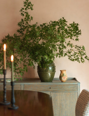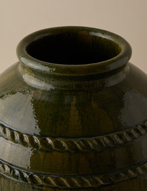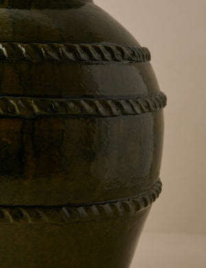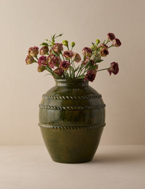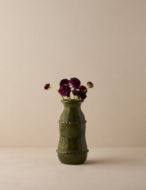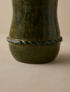 Heidi Caillier infuses this exclusive collection with all the warmth, pattern, and nostalgic details that define her celebrated interiors. This vase’s generous height makes it ideal for dramatic stems or foliage, adding a grounded, textural moment to any room. Each piece showcases a richly layered glaze and subtle coil detailing that add depth and artisanal character.
