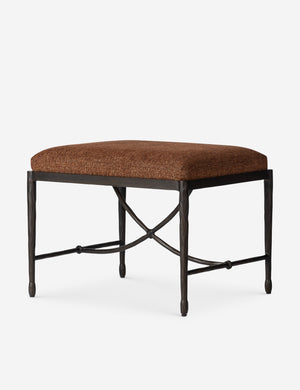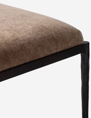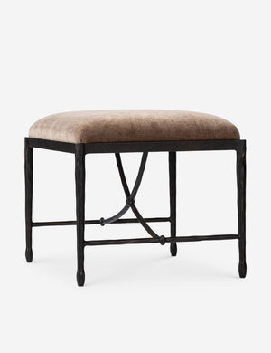 Perlaza blends transitional ease with Art Deco style in a sleek, streamlined silhouette. This stool pairs plush velvet upholstery with a hammered iron base featuring curved stretchers that bring a graceful bearing to the design. Whether placed in a pair at the foot of a bed, in an entryway, or styled beneath a window, it offers an elevating touch with a timeless feel.