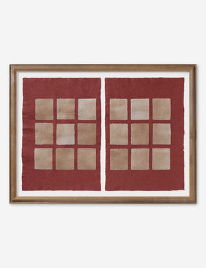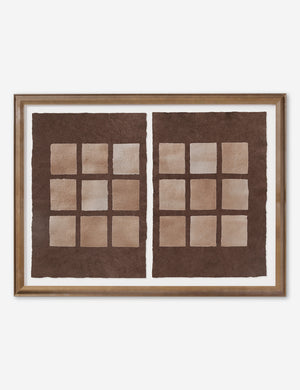 Phobos features a textured composition with handmade paper layered into a tonal collage. Each piece is floated in a light walnut frame to set off the grounding palette with quiet impact. Hang this diptych artwork to create balance and depth in your wall decor with a statement moment.
