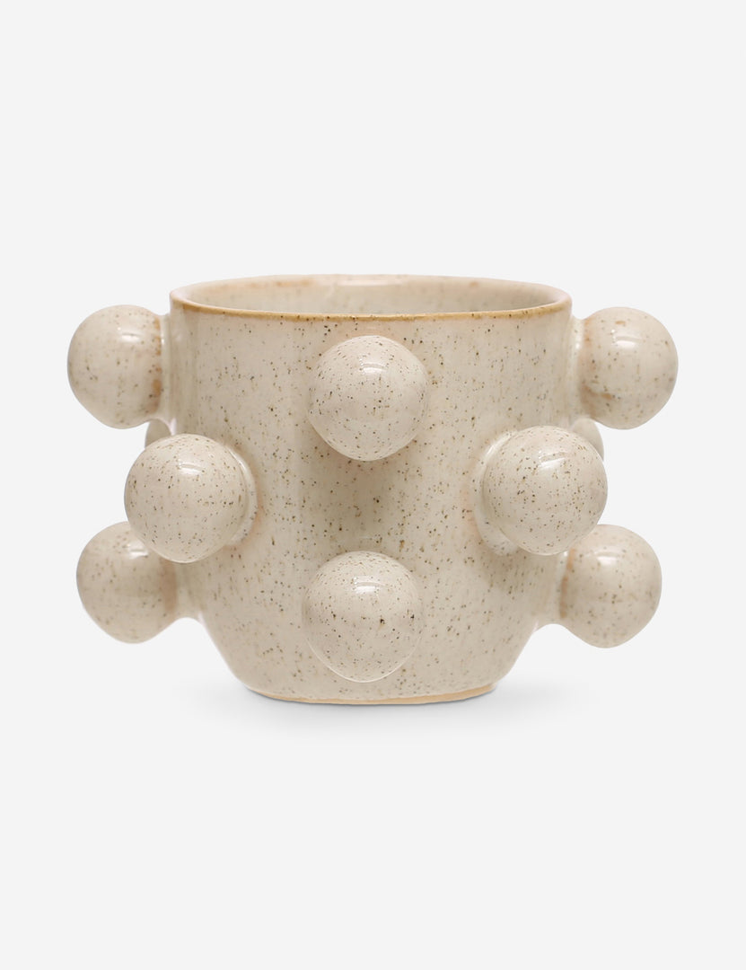 Decorative Knob details add a hint of whimsy to this stoneware planter pot. A speckled cream finish adds a touch of warmth with a smooth, glossy look that blends into a variety of decor styles.