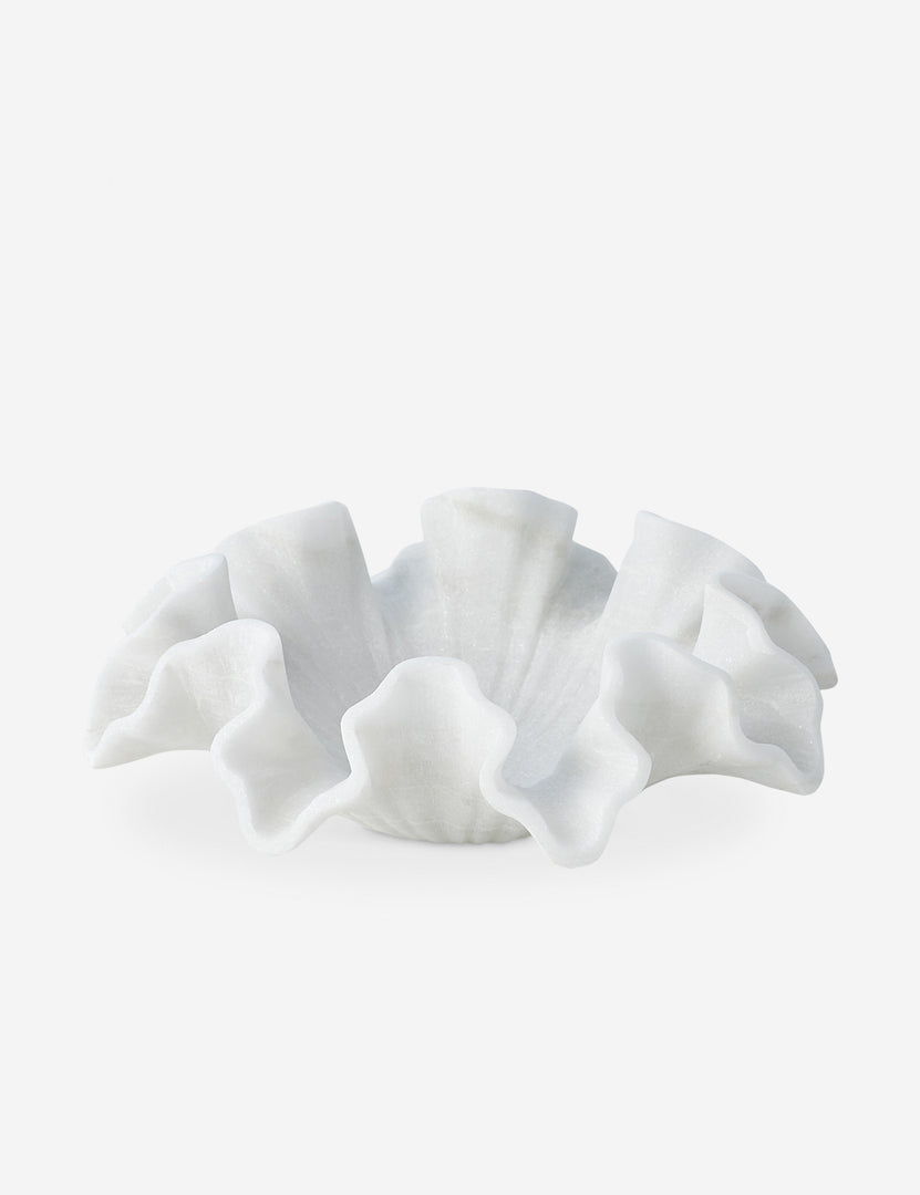 Soft curves and ruffled edges bring an airy, fluid form to marble in this low bowl. Use it as a centerpiece or as an elevated catchall on your console or coffee table.