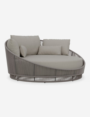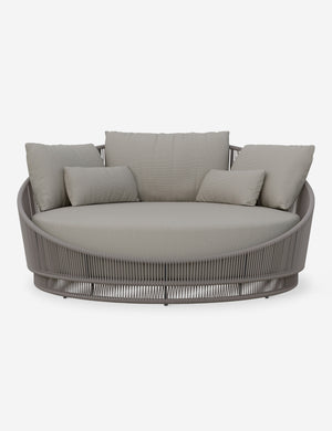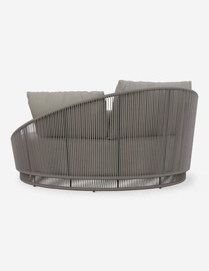 Elevate your indoor-outdoor style with the Portillo daybed. The aluminum frame curves into a tall-backed silhouette—strung with all-weather rope and fitted with a deep, performance cushion that removes for easy care. Its swooping shape invites lounge appeal with an extended couch seat piled in assorted loose-back pillows.