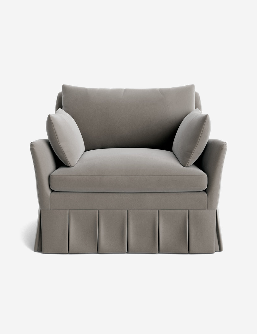 An easy update, the Portola chair brings a relaxed yet elegant look to your home. A pleated skirt adds a textural flourish to this stylish accent chair, complementing the slope-arm style with a classic touch.