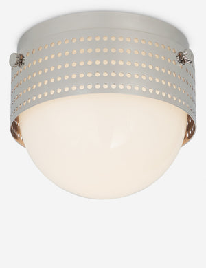 Kelly Wearstler possesses an intuitive eye for finding harmony through contrast, creating richly layered spaces and thoroughly refined elements for the home. Precision offers high-impact, low-profile flush mount lighting with its signature perforated metal. This mini ceiling light features a domed glass diffuser encased in a round shade for a play of texture and glow.