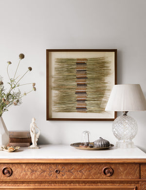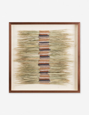 Bring a sense of organic dimension to your walls with this textile wall art. Featuring bunches of natural leaves wrapped in earth-tone threads and a black frame, this piece makes hannging your new wall artwork simple and stunning.