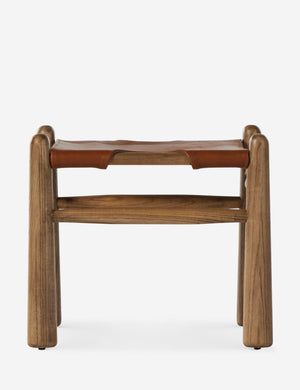 The simple, sturdy craftsmanship of the Radburn stool evokes a French country style grounded in the warmth of its natural materials. The spindle wood frame supports a sling-style seat of top-grain leather finished in a rich tobacco tone. Float this stool in the room for a refined accent with a rustic touch.