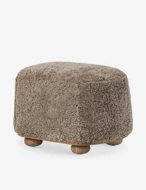 The Rajah ottoman features an oval silhouette and rounded oak bun feet for a soft, grounded feel. Upholstered in a plush shearling-style fabric, this small ottoman adds cozy texture and sculptural charm. Float it in the room or style it by the sofa for an inviting, versatile perch.