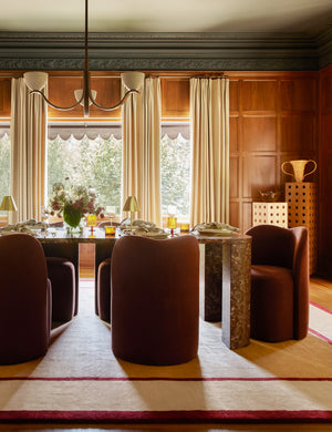 Fashion designer and creative director Carly Cushnie brings her celebrated sense of style to interiors with her first-ever line of furniture exclusively for Lulu and Georgia. From family meals to entertaining, this all-marble dining table adds the perfect touch of polish. The table's rich rose marble is treated with sleek lines and soft edges to cut a stunning silhouette, set for every occasion.
