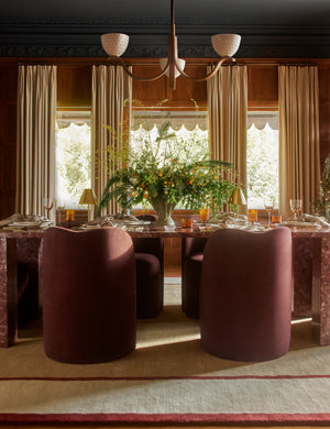 Fashion designer and creative director Carly Cushnie brings her celebrated sense of style to interiors with her first-ever line of furniture exclusively for Lulu and Georgia. From family meals to entertaining, this all-marble dining table adds the perfect touch of polish. The table's rich rose marble is treated with sleek lines and soft edges to cut a stunning silhouette, set for every occasion.
