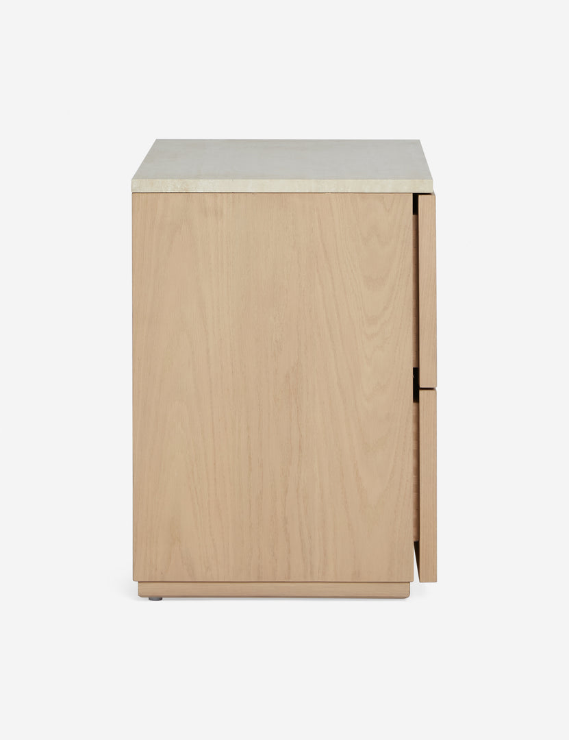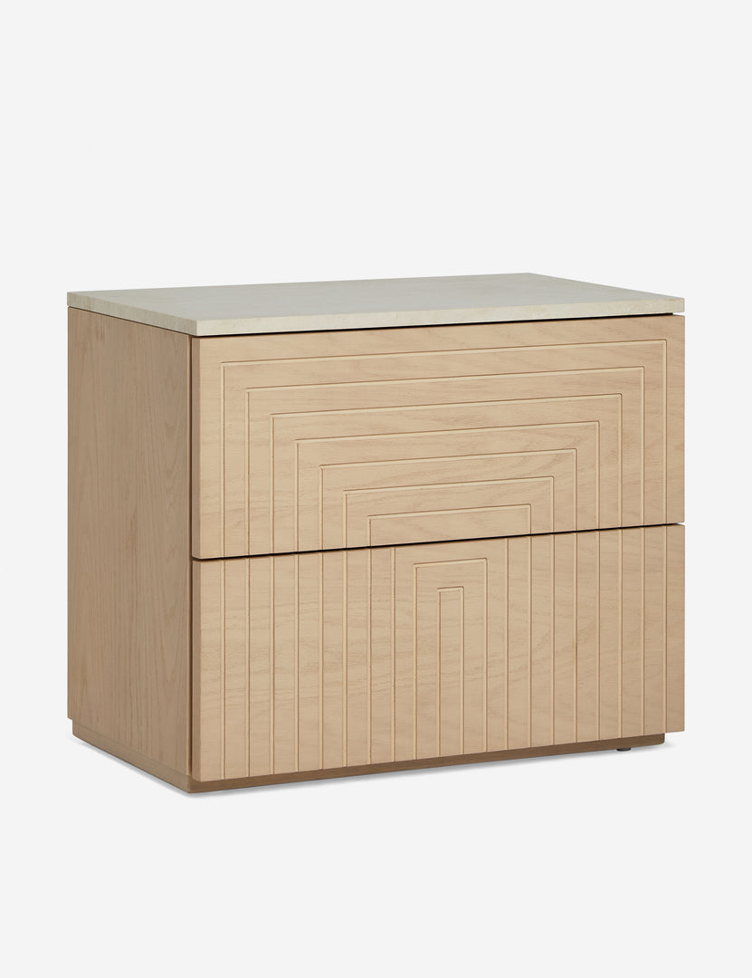 The Rayner nightstand is set to bring an artfully modern touch to earthy and coastal motifs. The natural oak design is perfectly versatile, enhanced with linear details. This two-drawer nightstand offers plenty of room to hold bedside essentials.