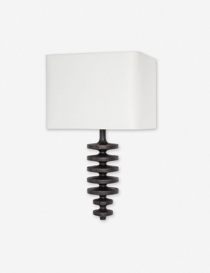 A simple yet stunning statement, this wall-mounted sconce features gradated, textured bands and a squared linen shade for a balanced, sculptural look. We love this sconce styled above bedside tables or as a pair above a console.