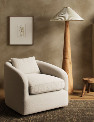 Don't be fooled by the low-profile design; this accent chair is big on the style points. Covered in soft textural upholstery with a plush pillow and hidden swivel, the Ren chair serves seventies style and modern comfort all in one. Don't be fooled by the low-profile design; this accent chair is big on the style points. Covered in soft textural upholstery with a plush pillow and hidden swivel, the Ren chair serves seventies style and modern comfort all in one.