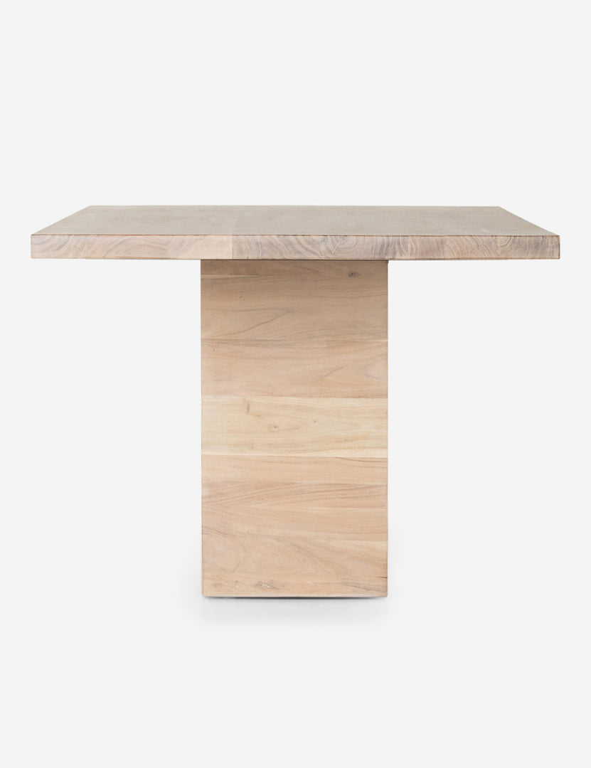The Ridley dining table brings elevated design to an elemental form. A crisp silhouette showcases the natural grain warmth of the solid acacia wood construction, blending modern appeal with organic tones in a showstopping dining room table.