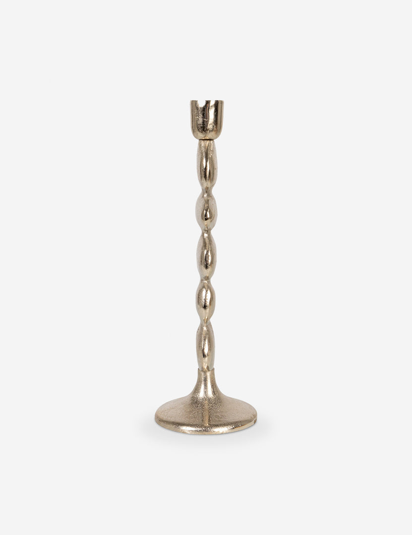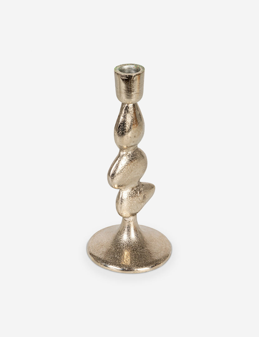 This silver taper holder stacks rounded forms for a bold, dimensional take on the classic candlestick. Style it on a mantel or dining table for a sculptural touch of warmth.