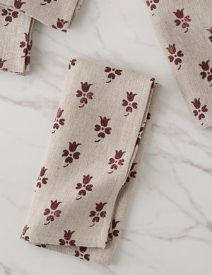 Our Romaric table linens feature a delicate floral print that brings softness and charm to your space. The petite motif and natural linen underpin any tablescape with a timeless touch.