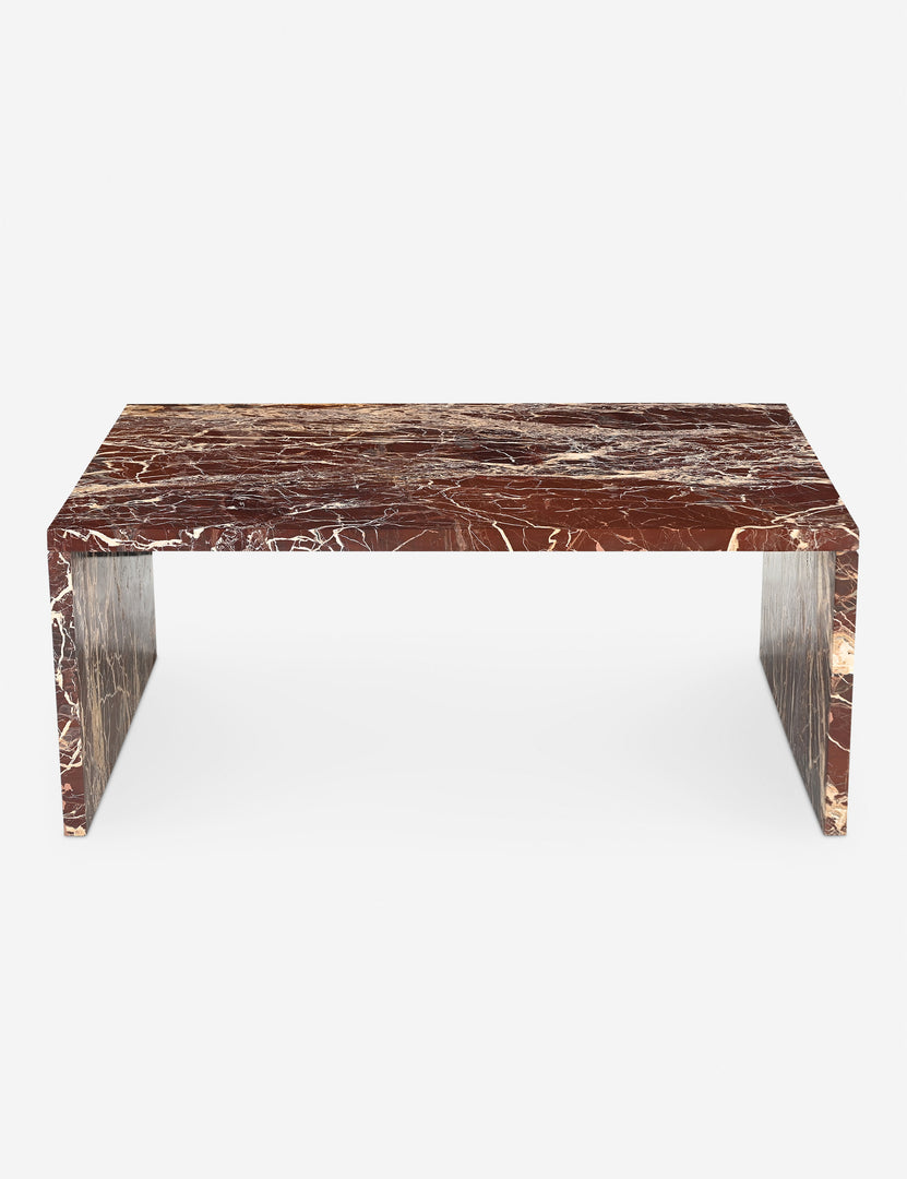 The Roque coffee table finds luxury in simplicity. The waterfall design's clean lines showcase the natural drama of the stone, with unique patterns in each piece. Whether anchoring a formal seating group or layering luxury into an everyday lounge, this marble coffee table will elevate your space.