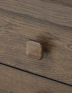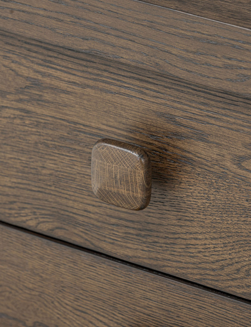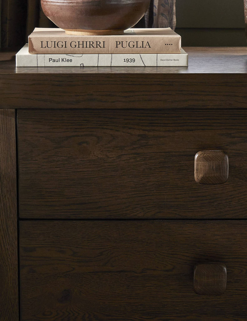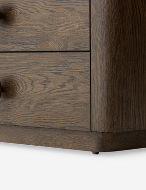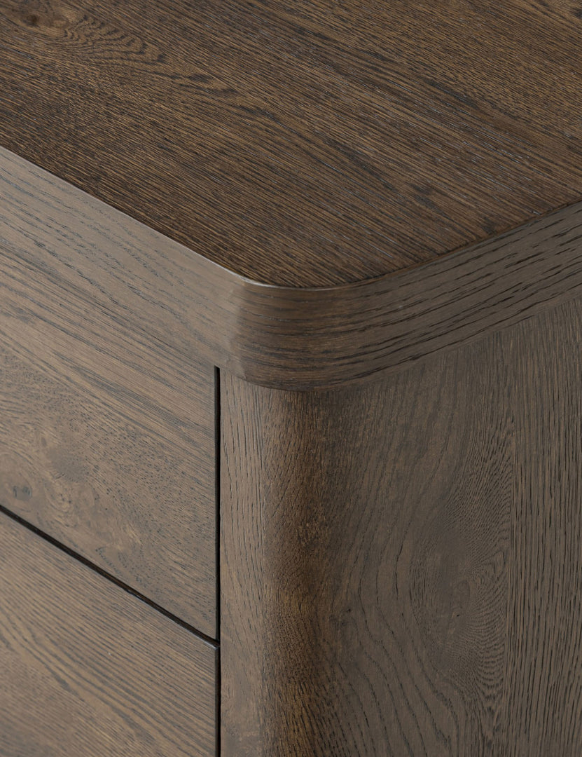 Rooted in sculptural simplicity, the Rosaldo nightstand offers a bold presence with a modern feel. Its softly curved lines and chunky silhouette balance refined craftsmanship with an organic edge. With ample surface and drawer space, this large nightstand brings a grounding touch with plenty of storage to your bedside.