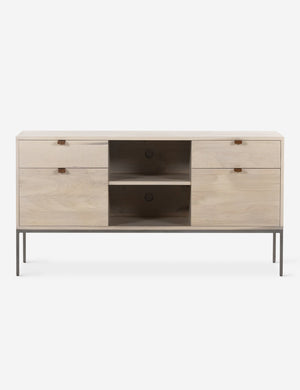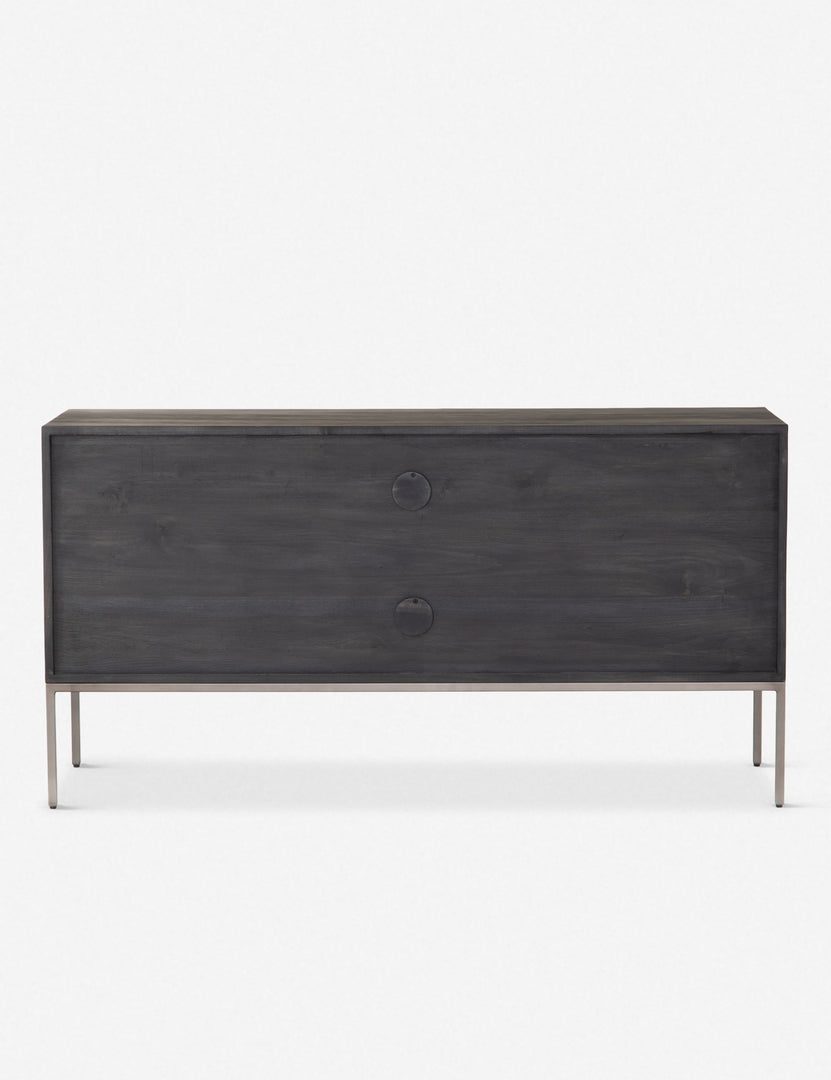 Keep your office style grounded (and super organized) with this wooden filing console. Features elements of mid-century aesthetics like a black wash, slim iron base, and top-grain leather drawer pulls.
