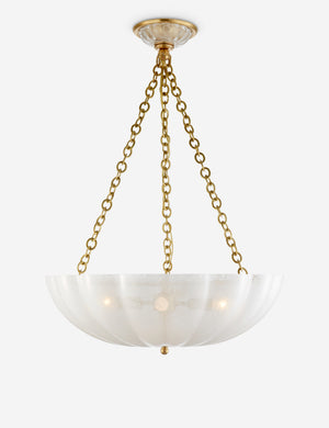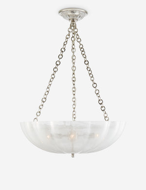 Rosehill blends soft form with quiet glamour for lighting that feels both timeless and fresh. The chandelier’s graceful bowl silhouette and strié glass shade add a luminous elegance overhead. Use this large chandelier to set a sophisticated tone in dining rooms or entryways.