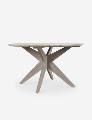 Make your outdoor space a place to gather, entertain, or enjoy a quiet weekend brunch with the Rosetta dining table. This round table is crafted from teak and finished for a modern look. The angular X-base brings an artful edge to its rustic plank top for an elevated al fresco style.