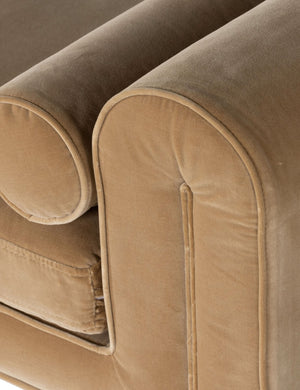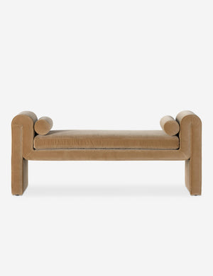 Set your space for streamlined sophistication with this stylish accent bench. Soft, upholstered lines gently curve and fold into a modern bench seat, offering a trend-forward look with timeless appeal. The clean and balanced profile blends linear elements with rounded edges and cylinder cushions for a plush yet airy design.
