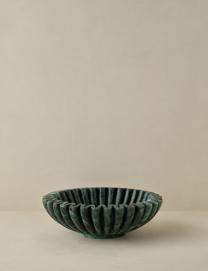 Anastasio Home works with craftspeople around the world to bring limited-run accessories and upcycled luxury goods to your home. The Ruffle bowl is cut from a single piece of stone and worked by hand into its sculptural form. This heirloom-quality piece shows the unique marks and imperfections of the artisan's process.