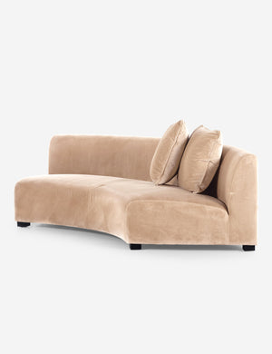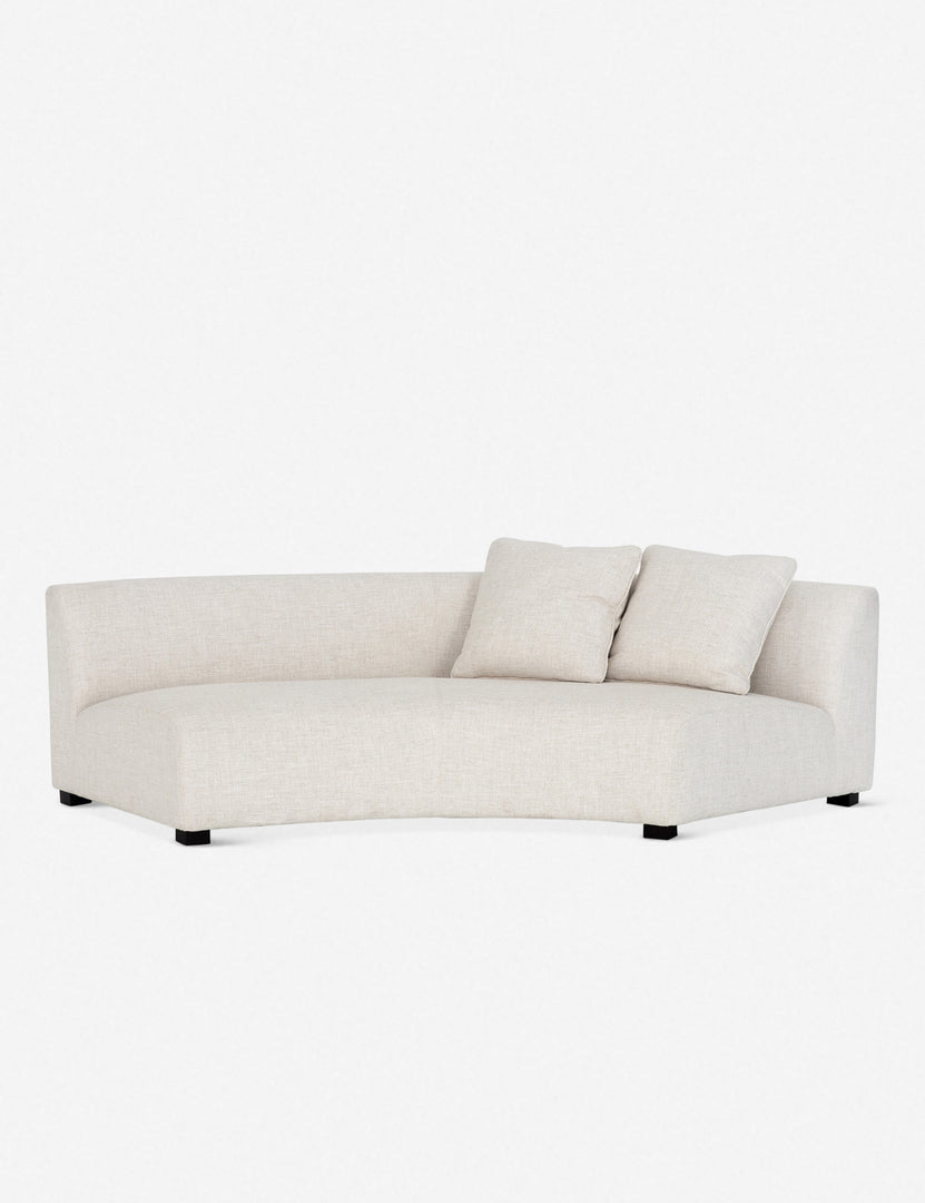This curved sofa is anything but ordinary. A crescent silhouette makes for a grand display in any room, but you can also place them together for a full curved shape.