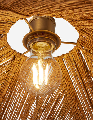 The Samina pendant makes a bold statement with its wide, tapered shade. Handwoven jute lends natural texture and organic warmth, while brass accents refine the look with a touch of polish. This pendant light is perfect for bringing relaxed sophistication to a dining area, kitchen, or lounge.