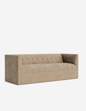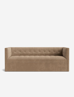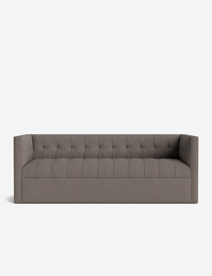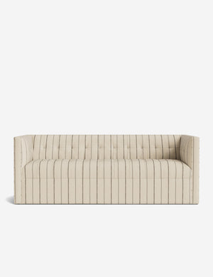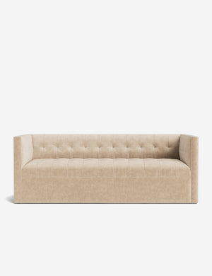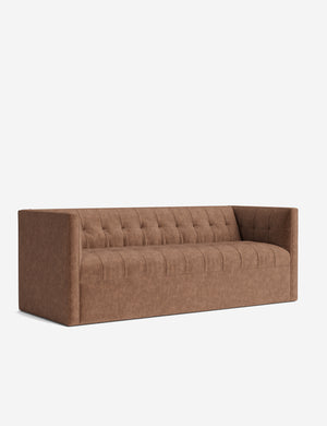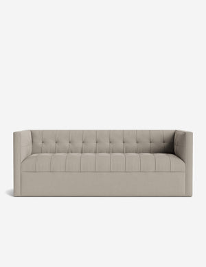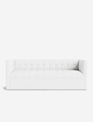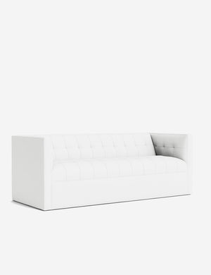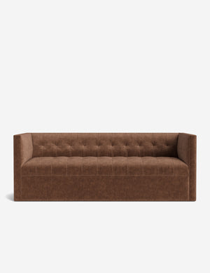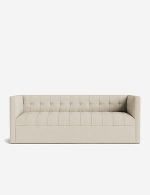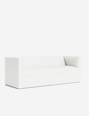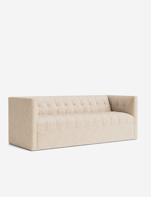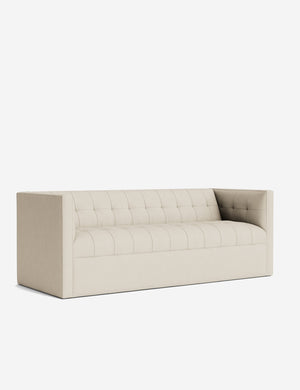 With its crisp tuxedo silhouette and high seat deck, this sofa offers a structured take on classic comfort. Tufted upholstery, a firm sit, and elevated proportions give it a stately edge, while the hand-upholstered finish ensures elegance in every detail. We love this statement sofa as a timeless anchor for formal living spaces or refined lounges.