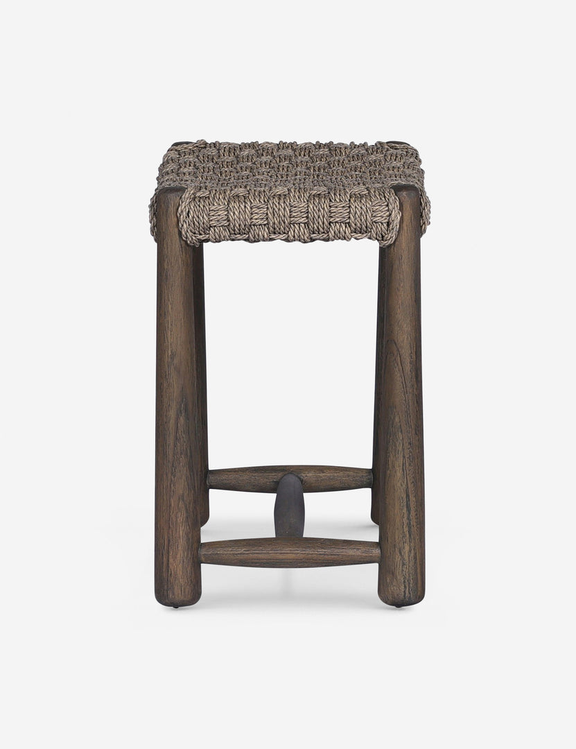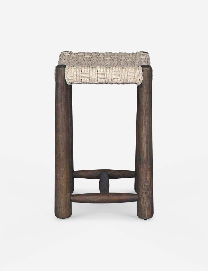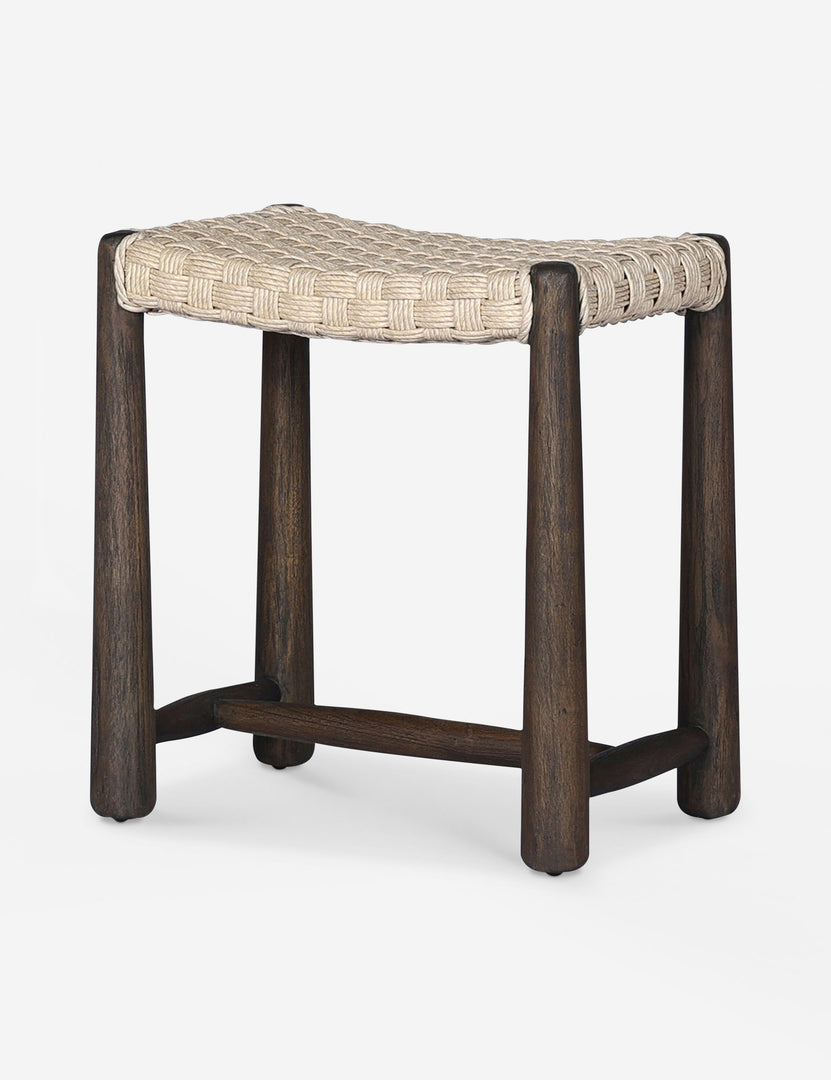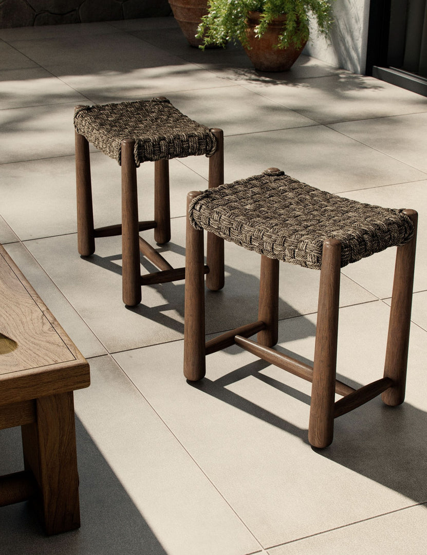 Four Hands brings their exceptional craftsmanship to a timeless collection rooted in Amber Lewis' perennial California style. Enhance your patio or entryway with the texture and craftsmanship of this indoor/outdoor stool. It features a rich wood frame and intricately woven seat that adds depth and dimension with a practical touch.
