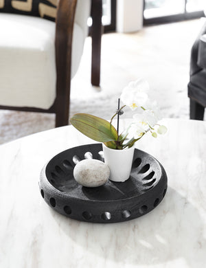 Regina Andrew is a husband and wife duo whose distinctive lighting and decor feature globally inspired designs with a modern edge and luxury in every detail. With its sleek silhouette and rustic grain, the Savior bowl is the perfect tabletop accent for a transitional edit. This low wood bowl can ground coffee table decor or serve as a catchall for a console or entryway table.