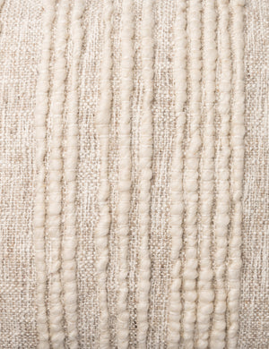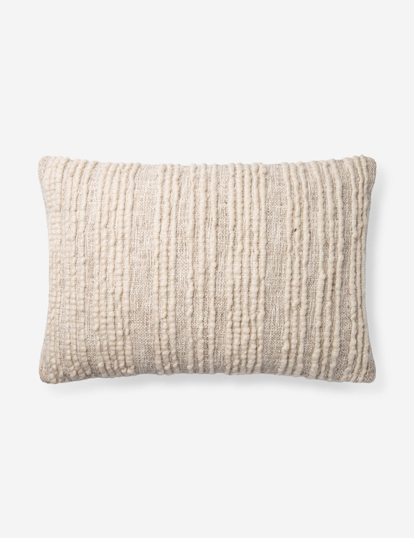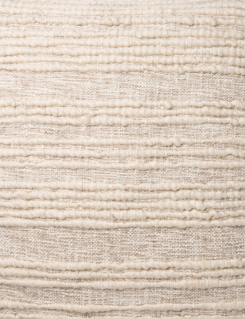With its cream-colored hue and multistripe design, this decorative pillow offers an understated touch. Handwoven from a wool-jute blend, this textural throw pillow makes for a refined accent piece to style in a formal sitting room or atop a luxe bedding set.