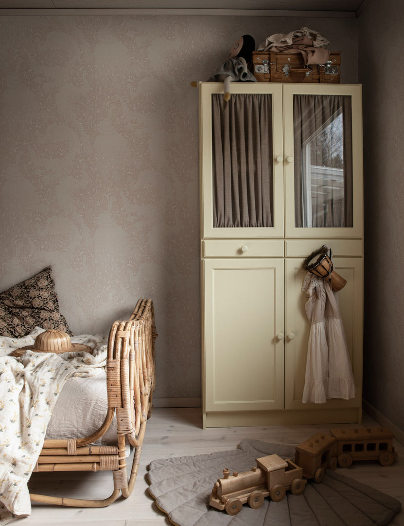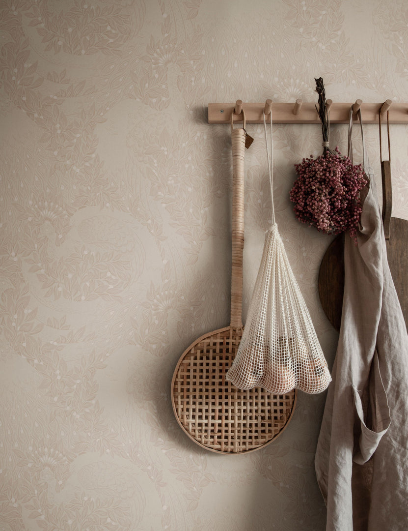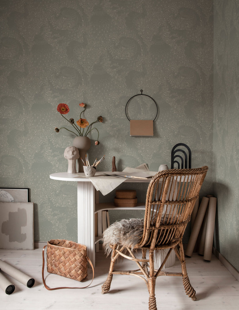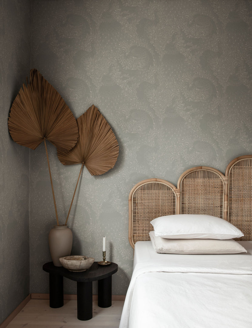 Scalamandre’s Evelina wallpaper features a flowing blend of botanical elements and elegant plumage. With its tonal palette and delicate details, this modern wallpaper offers a touch of drama that feels understated and refined.