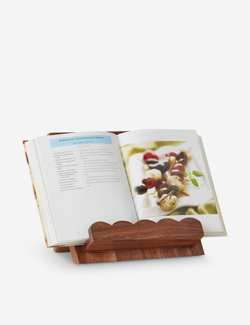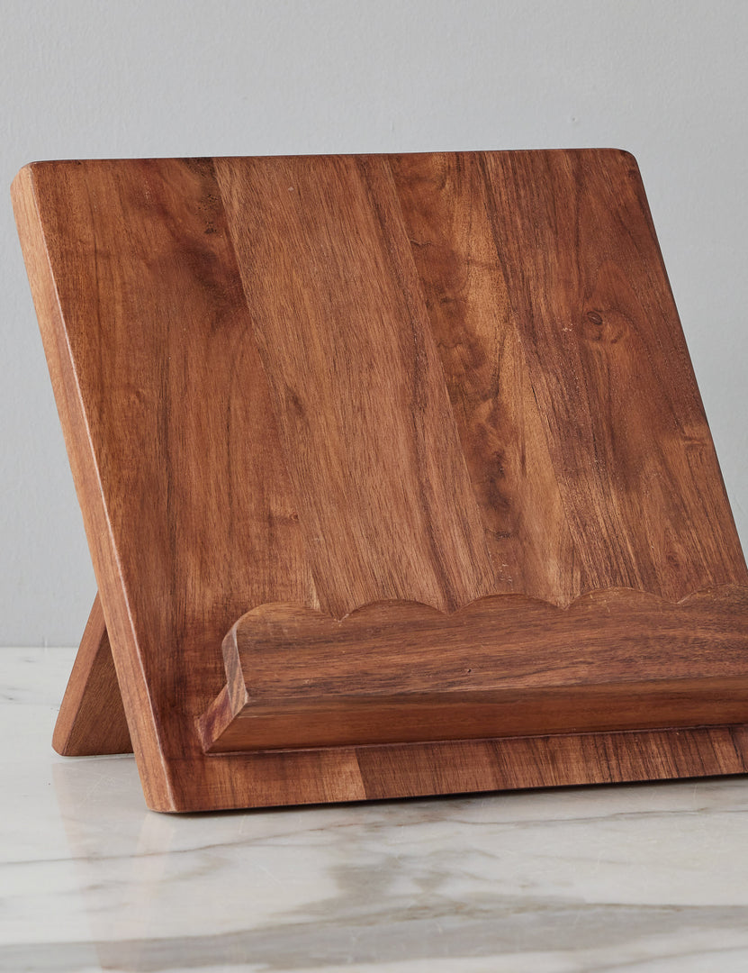 This wooden cookbook stand keeps your recipes, books, or tablet upright with a charming scalloped ledge. Perfect for kitchen counters, desks, or anywhere you want a hands-free display.