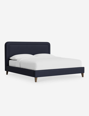 With its crisp lines and upholstered frame, the Scottie bed offers a tailored yet inviting look. An inset welt outlines the soft shape of the headboard with a refined touch. Bespoke upholstery lets you style this platform bed to suit your space.