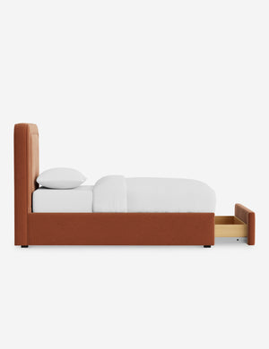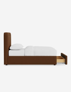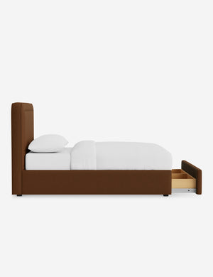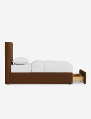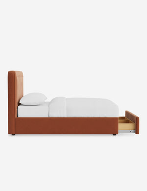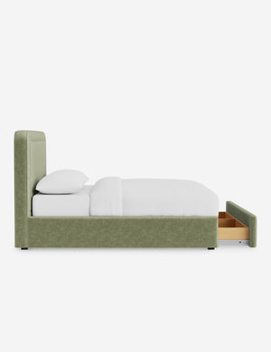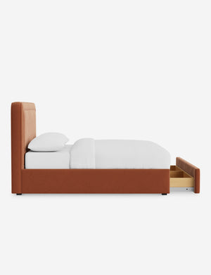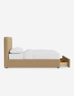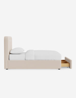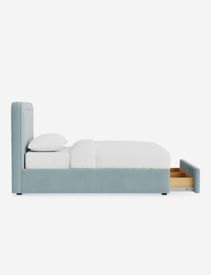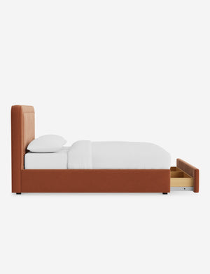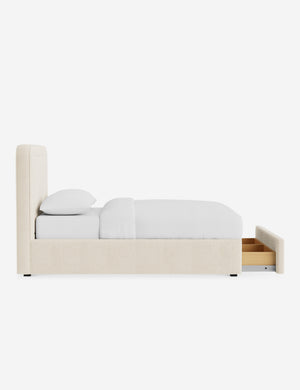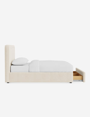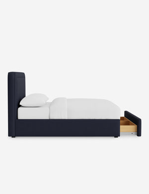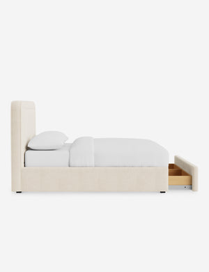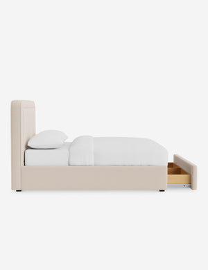 With its crisp lines and upholstered frame, the Scottie bed offers a tailored yet inviting look. An inset welt outlines the soft shape of the headboard with a refined touch. Built-in storage below the bed lets you keep your style streamlined and your essentials neatly tucked away.