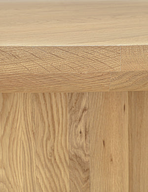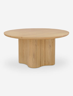Crafted with a contoured base and rounded top, the Sidney dining table feels grounded yet artfully refined. The oak veneer adds warmth and durability while softening the sculptural form. This modern table brings statement style to everyday dining and every occasion.