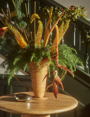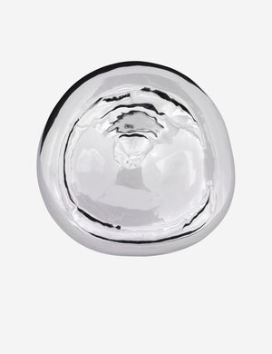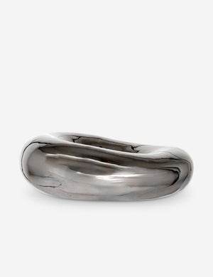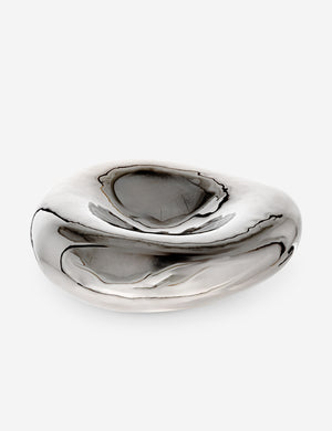 A high-gloss glaze gives this stoneware bowl a chrome finish that highlights its sculptural form. Let it reflect light on a coffee table or entry console for a sleek, modern touch.