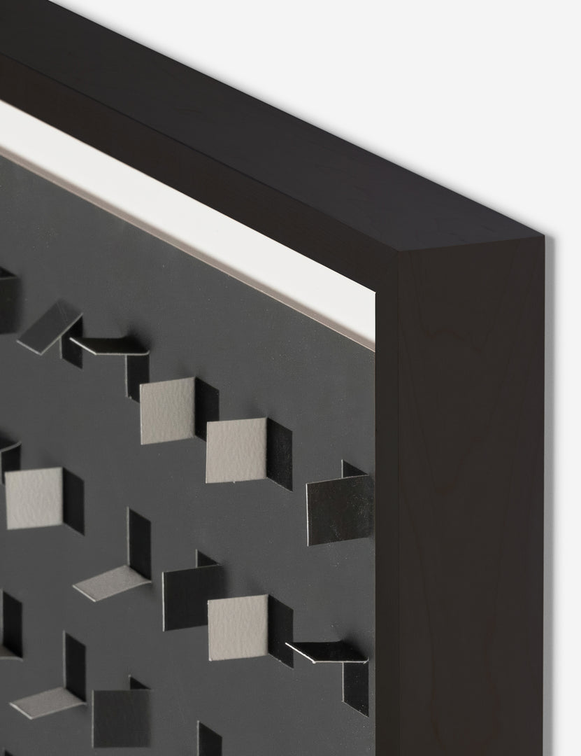 Add a touch of depth to your space with this mixed-media wall art. Paper cutouts on a linen backdrop create a striking textural array for a modern edge in your wall decor. The offset flaps give the orderly rows a sense of fluttering movement, setting off this eye-catching piece with balance and poise.
