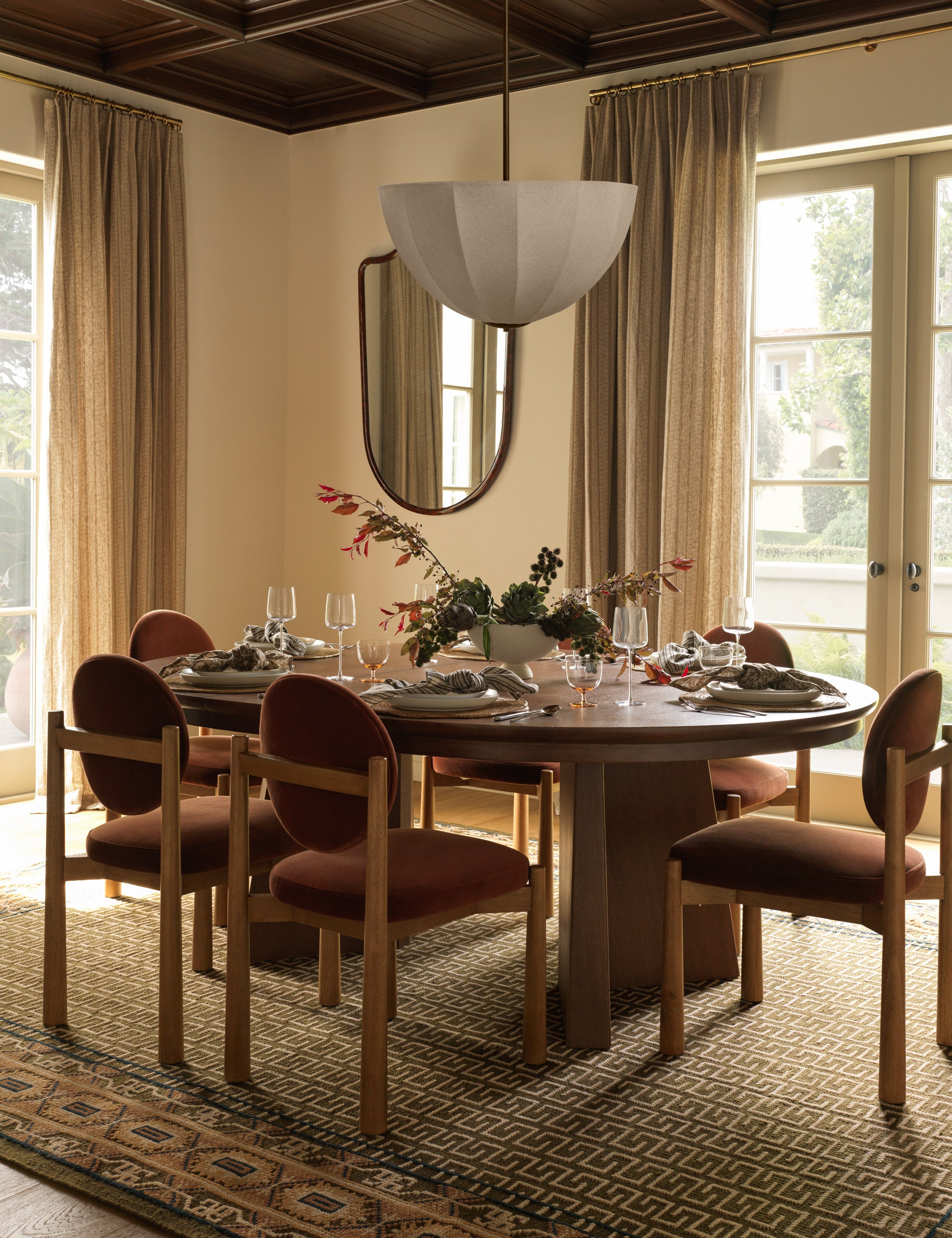 DISC Interiors emphasizes people and place in their designs, creating spaces that find balance and impact through thoughtful curation. They bring that same philosophy to this collection with pieces that invite you to live in comfort and love your surroundings. Their Sello pendant brings organic elegance overhead. The botanical structures of tree branches and seed pods inspired the sculptural, linen-wrapped shade of this quietly impactful ceiling light.