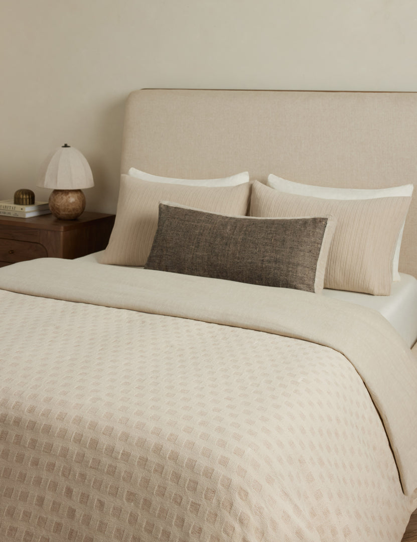 DISC Interiors emphasizes people and place in their designs, creating spaces that find balance and impact through thoughtful curation. They bring that same philosophy to this collection with pieces that invite you to live in comfort and love your surroundings. The Sen bedding collection evokes serenity with a textural grid inspired by the shoji screens found in traditional Japanese design—we love the delicate touch of the cotton.