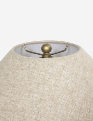 Natural terracotta shapes the Serapo table lamp with a bold yet grounded feel. Its generous base and linen-silk blend shade offer a striking contrast, showcasing the rich texture of both materials. Style this lamp on a living room console or as a warm and sculptural addition to your dresser.